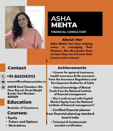 Asha Mehta has been helping many in managing their finances. She also guides them on how they can increase their income and revenue!